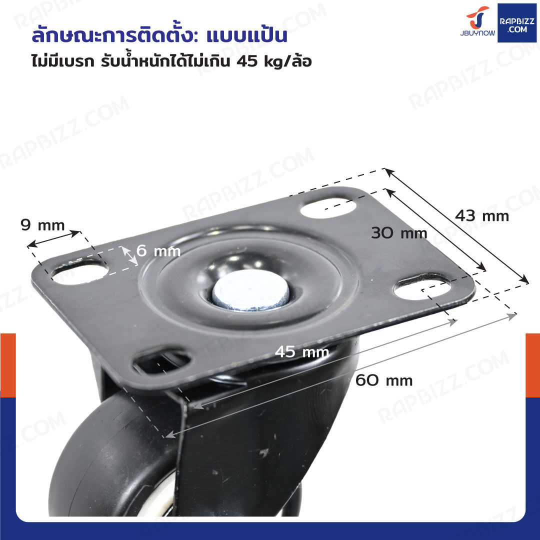 - ล้อ PU ขนาด: 1.5 นิ้ว