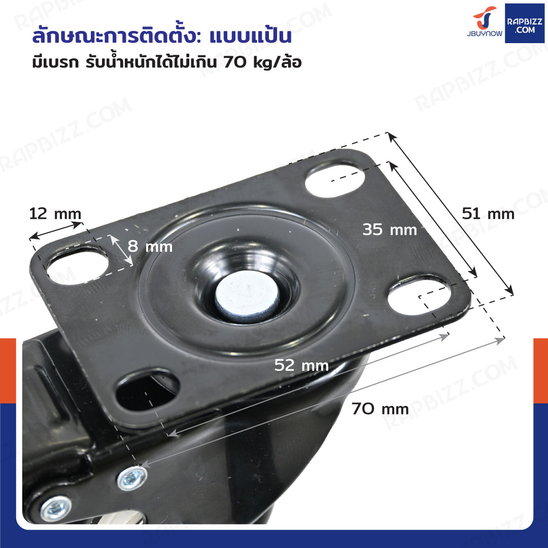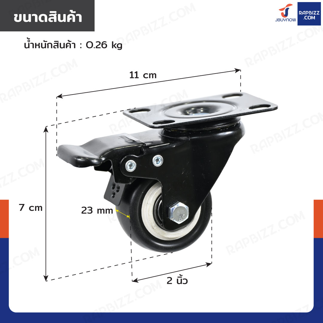 ล้อ PU 2 นิ้ว แป้นเป็นมีเบรก