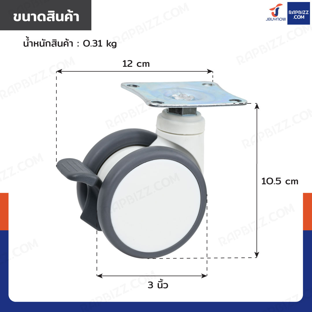 - ล้อคู่ TPR ขนาด: 3 นิ้ว