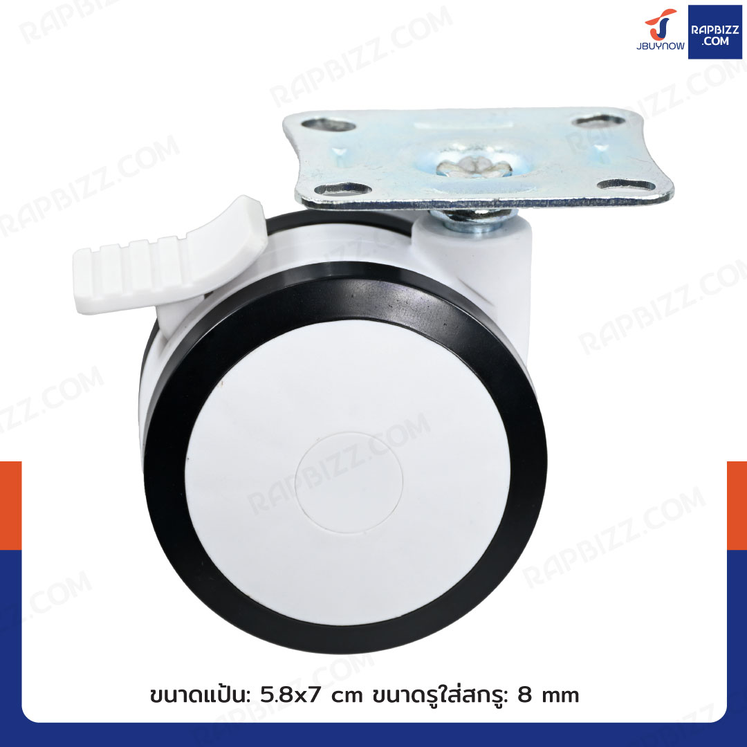 ล้อคู่ 3 นิ้ว แป้นเป็นมีเบรก ขอบดำ สีทูโทนดำ