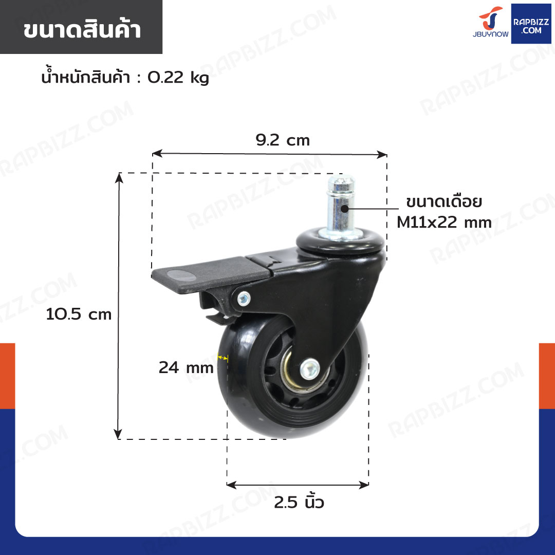 - ล้อ PU ขนาด: 2.5 นิ้ว