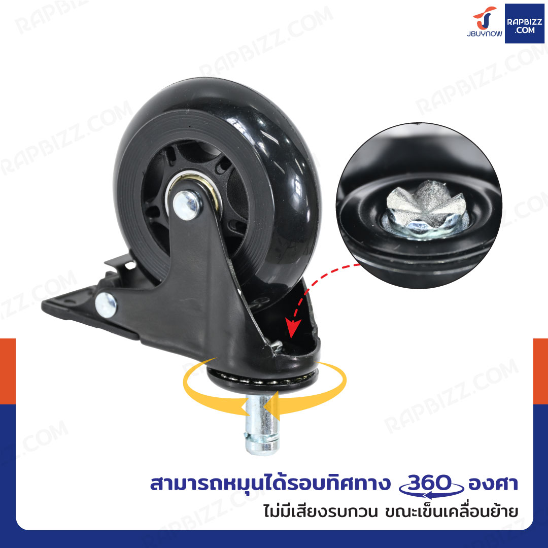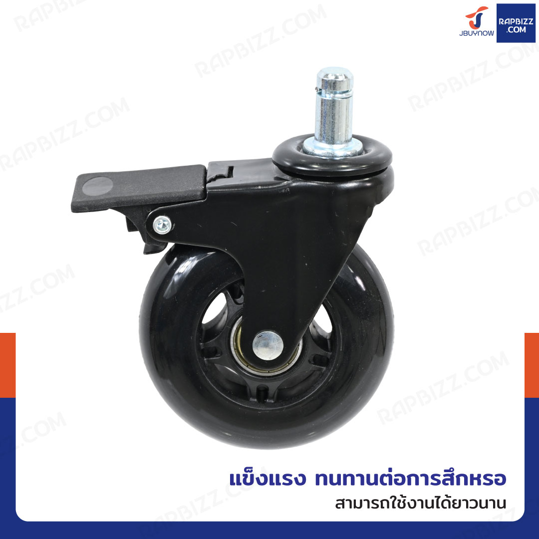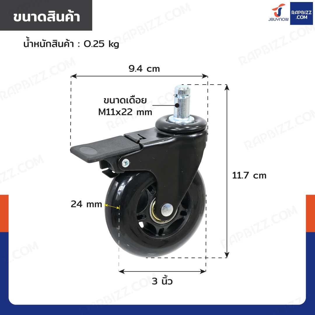 ล้อ PU 3 นิ้ว เดือยมีเบรก M11x22 สีดำ