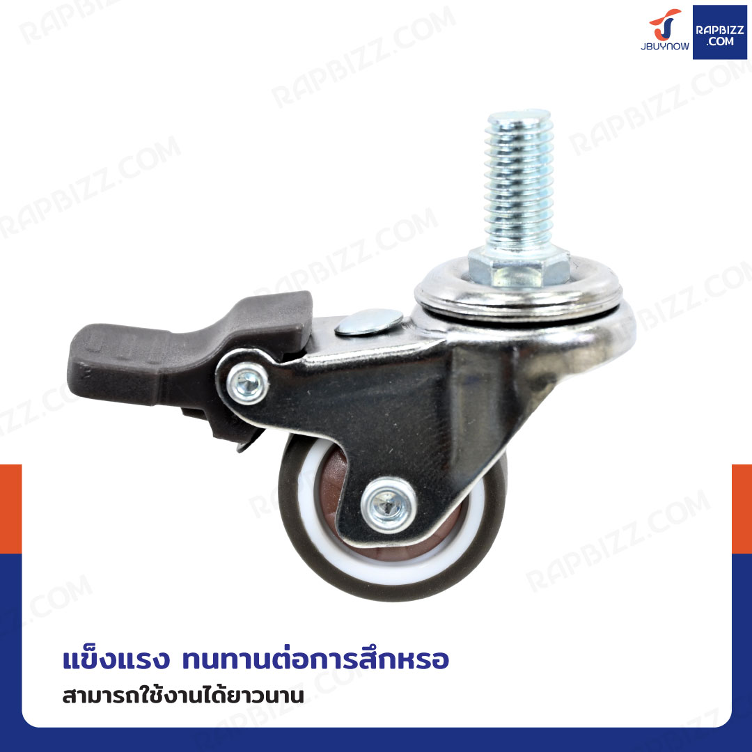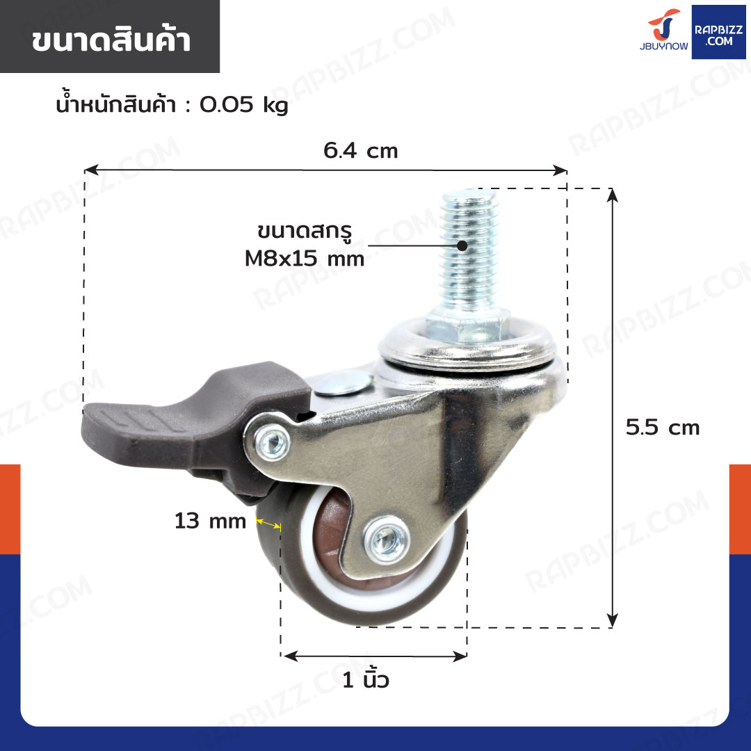 ล้อ TPR 1 นิ้ว สกรูมีเบรก M8x15 สีน้ำตาล