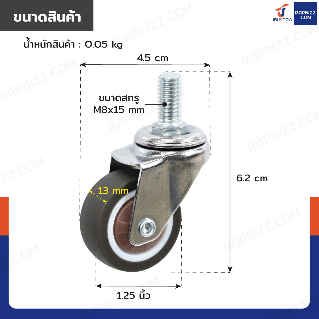 - ล้อ TPR ขนาด: 1.25 นิ้ว