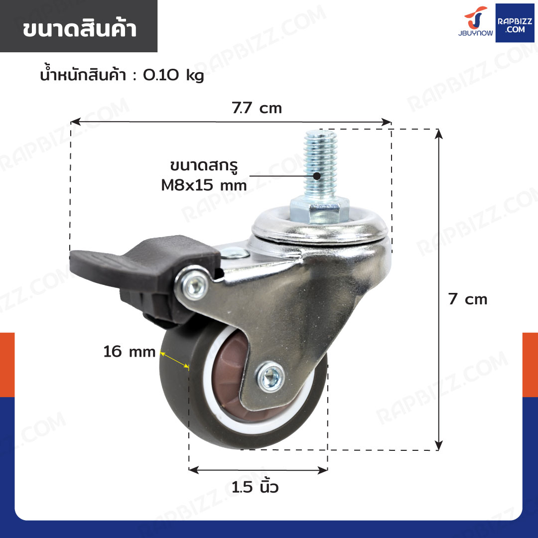 ล้อ TPR 1.5 นิ้ว สกรูมีเบรก M8x15 สีน้ำตาล