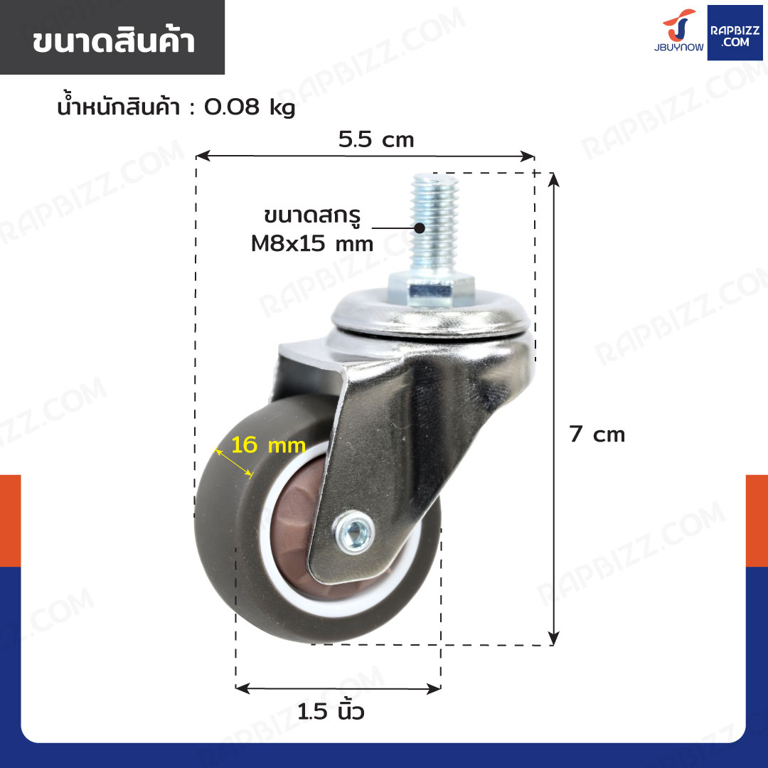 - ล้อ TPR ขนาด: 1.5 นิ้ว