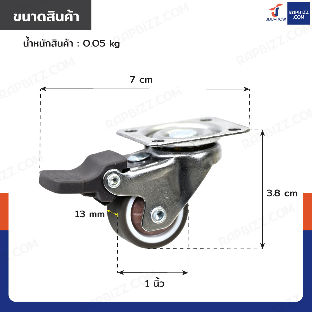 ล้อ TPR 1 นิ้ว แป้นเป็นมีเบรก สีน้ำตาล