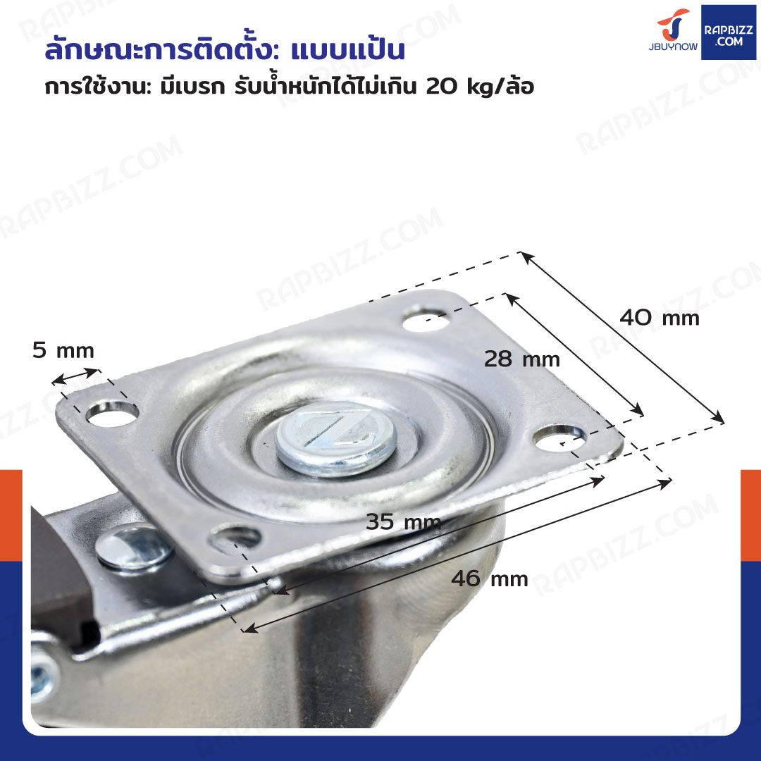 - สามารถรับน้ำหนักได้ไม่เกิน 20 kg/ล้อ