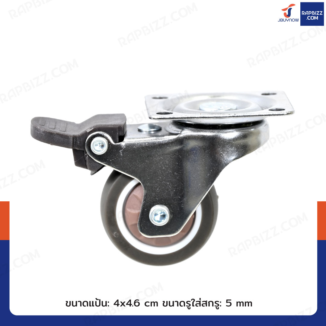 ล้อ TPR 1.5 นิ้ว แป้นเป็นมีเบรก สีน้ำตาล