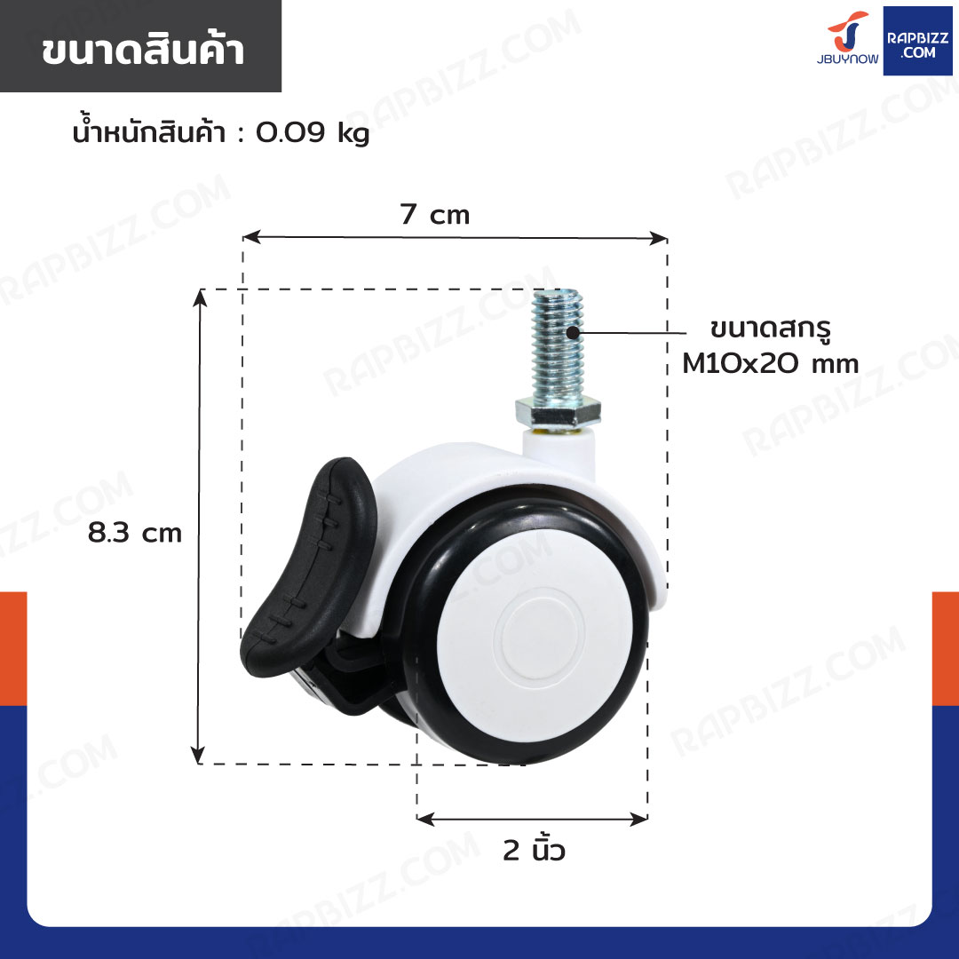 ล้อคู่ 2 นิ้ว สกรูมีเบรก M10x20 สีทูโทนดำ