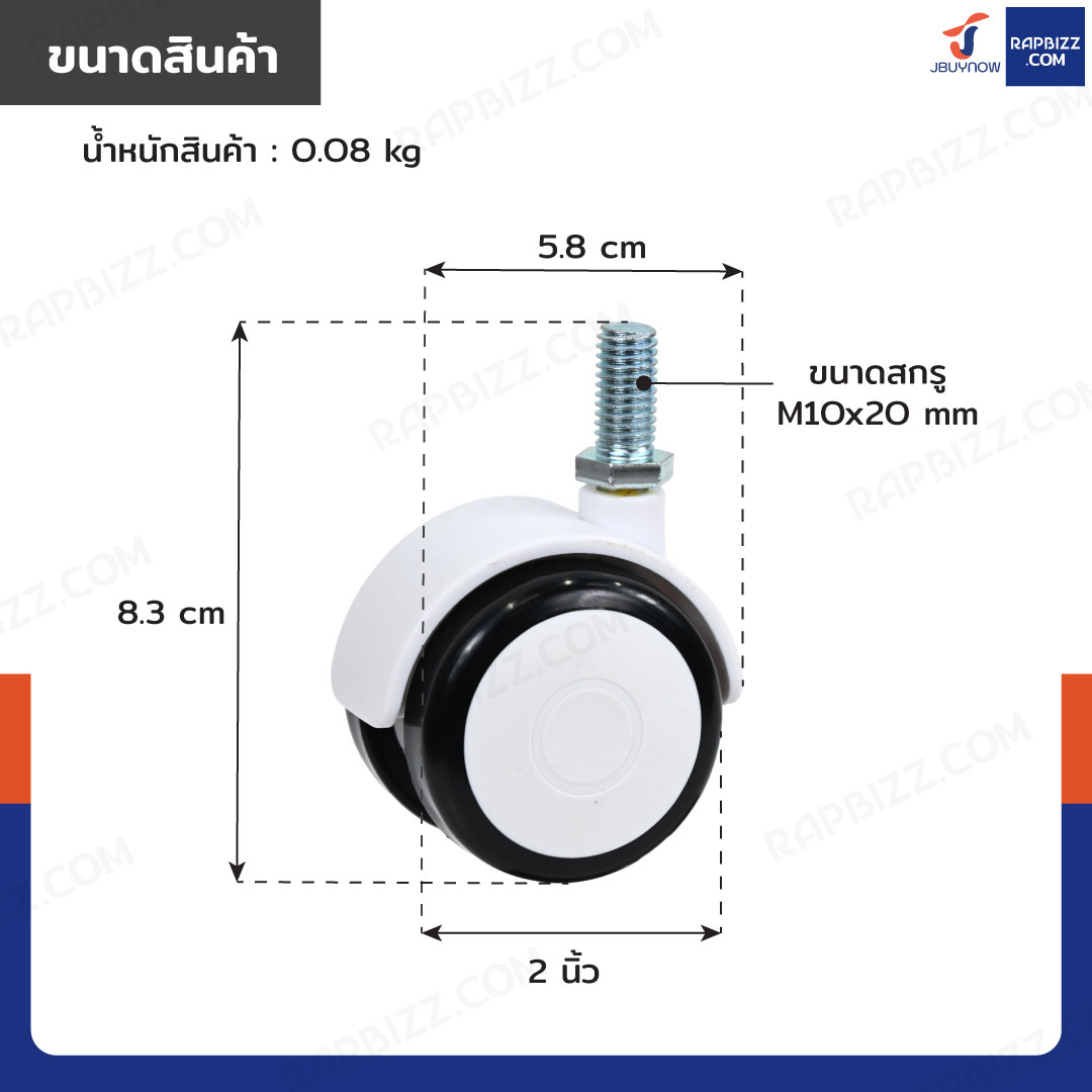 ล้อคู่ 2 นิ้ว สกรู M10x20 สีทูโทนดำ