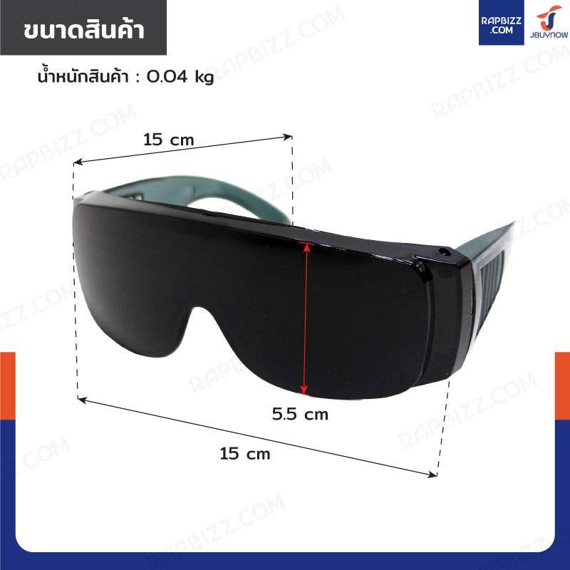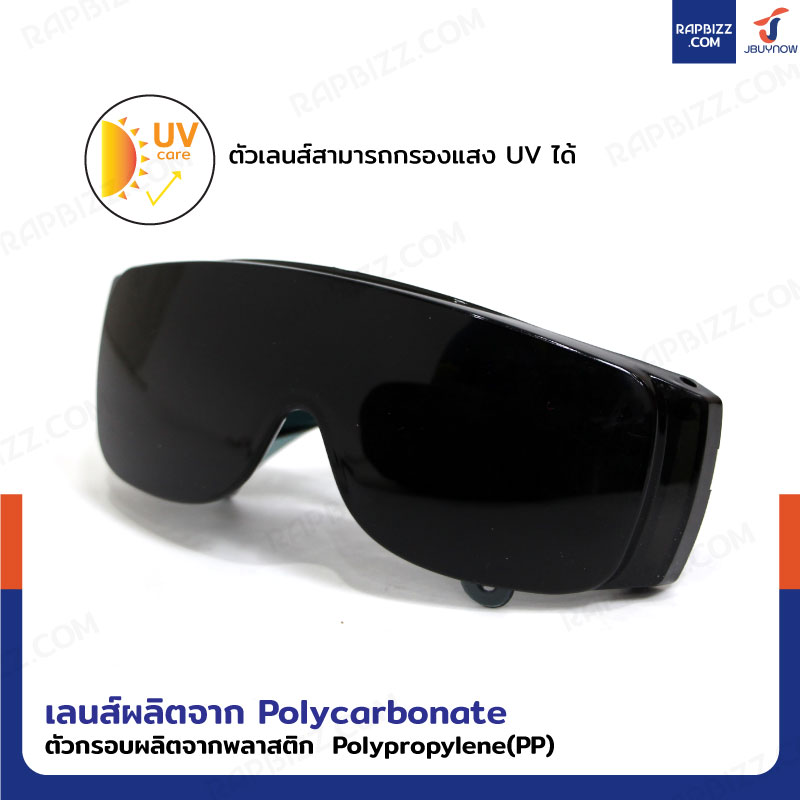 แว่นนิรภัย แบบสวมทับแว่นตาได้ เลนส์ดำ