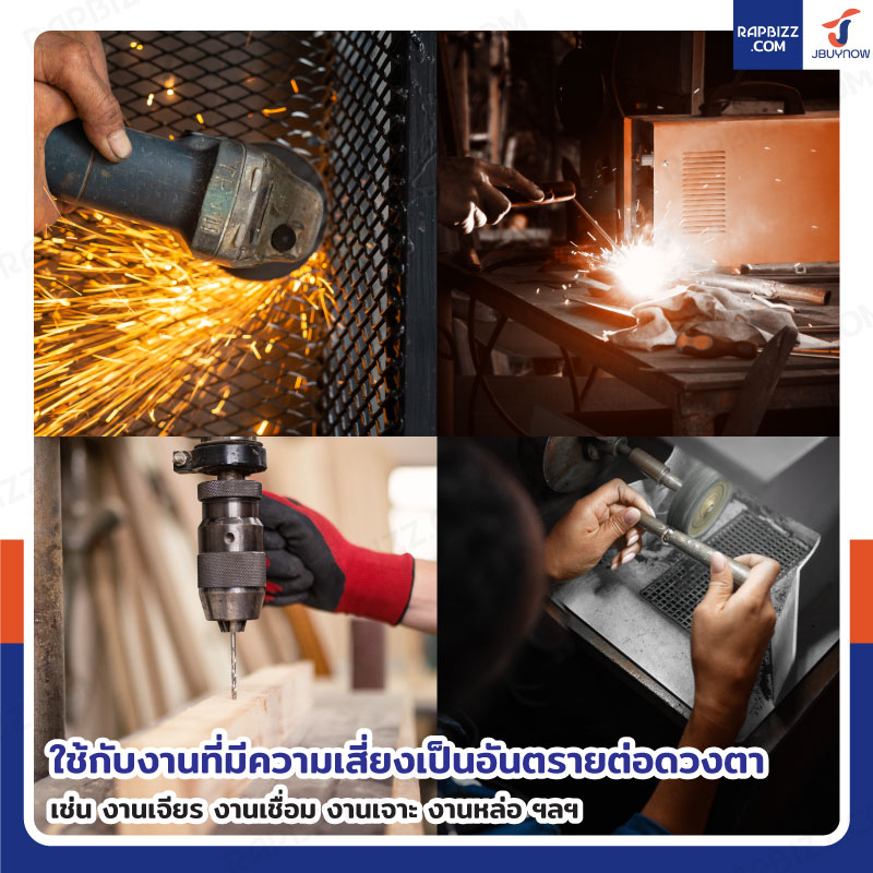 - สามารถใช้กับงานที่มีความเสี่ยงเป็นอันตรายต่อดวงตา เช่น งานเจียร งานเชื่อม งานเจาะ งานหล่อ ฯลฯ
