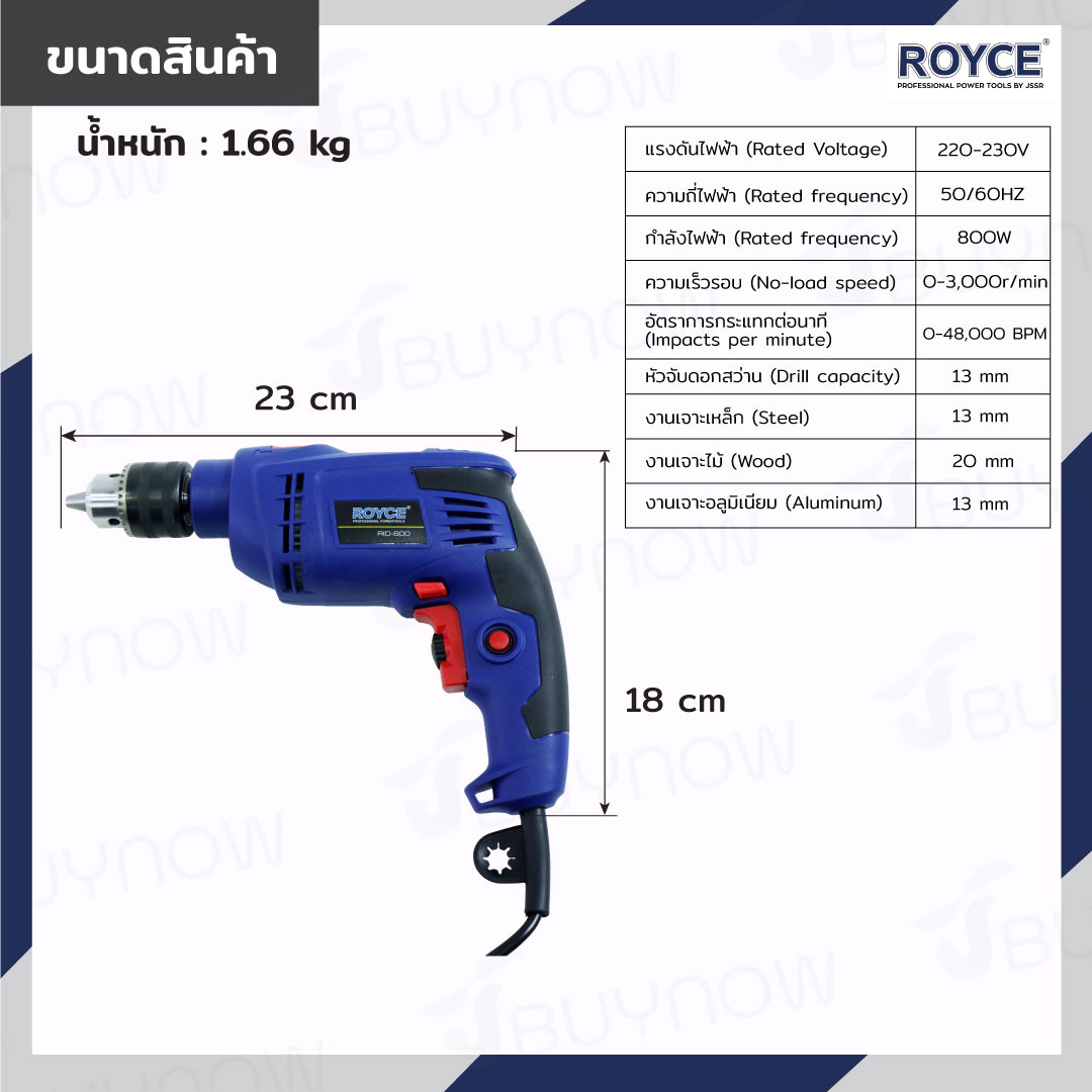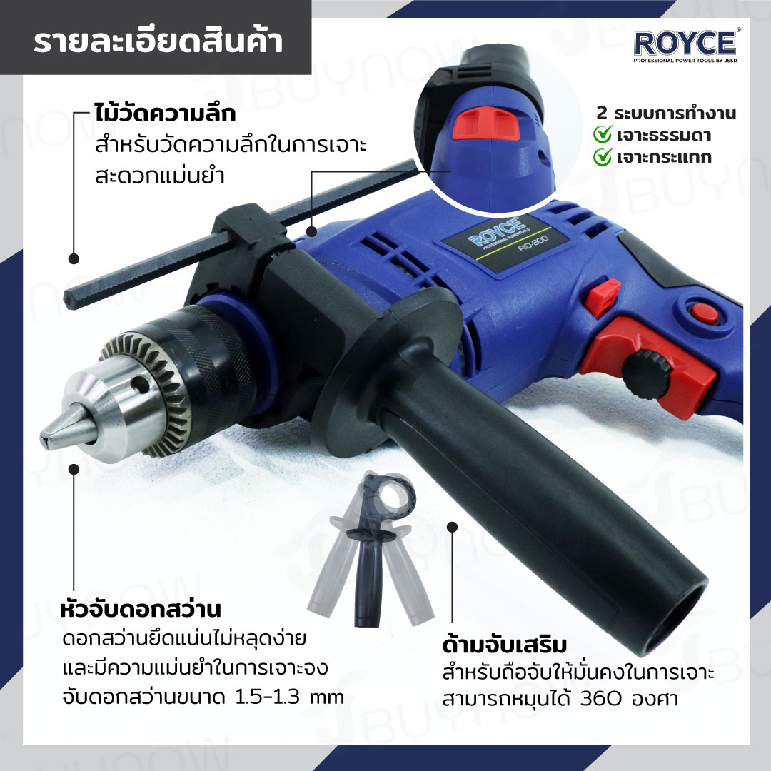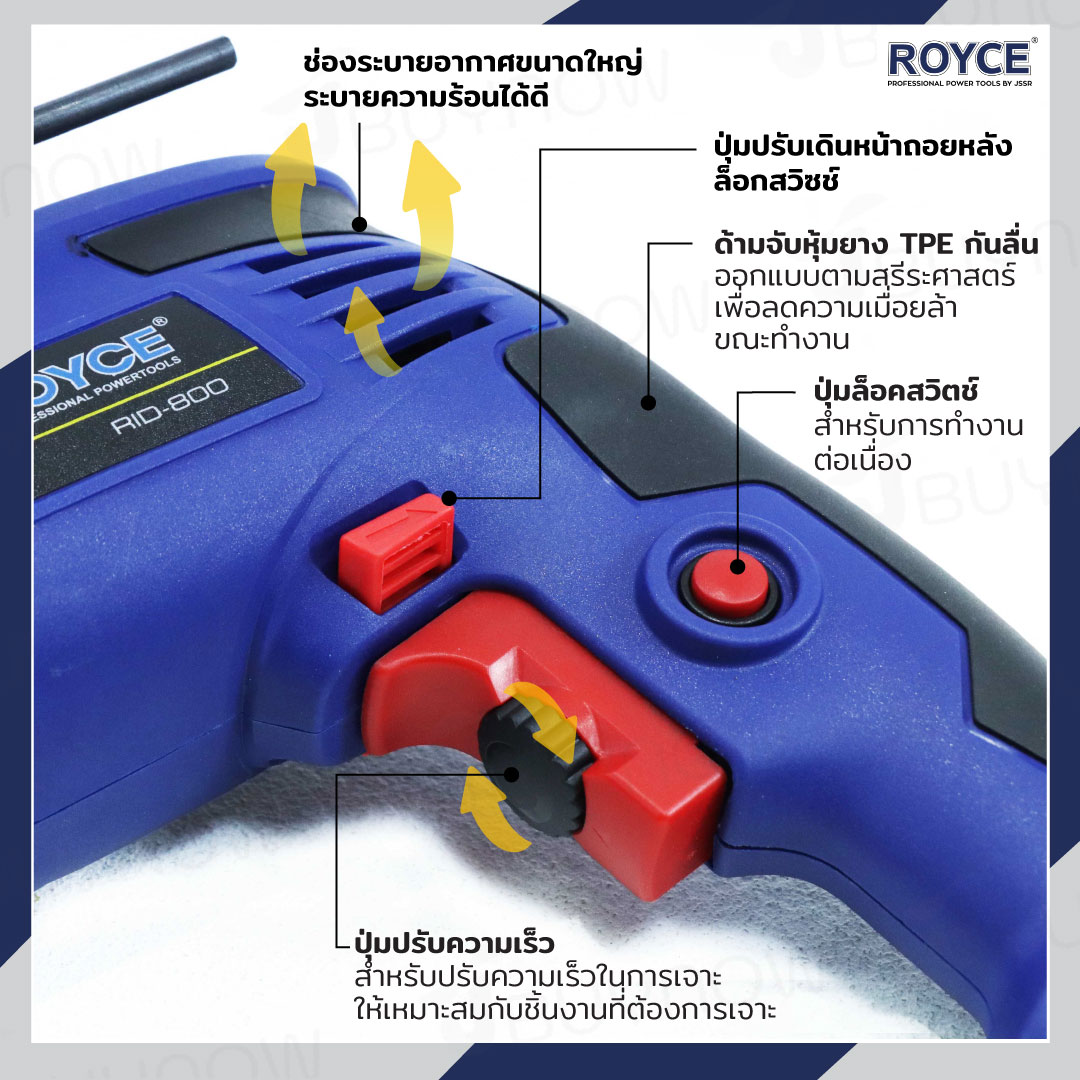 สว่านกระแทกไฟฟ้า 13mm 800W ROYCE JBUYNOW RID-800
