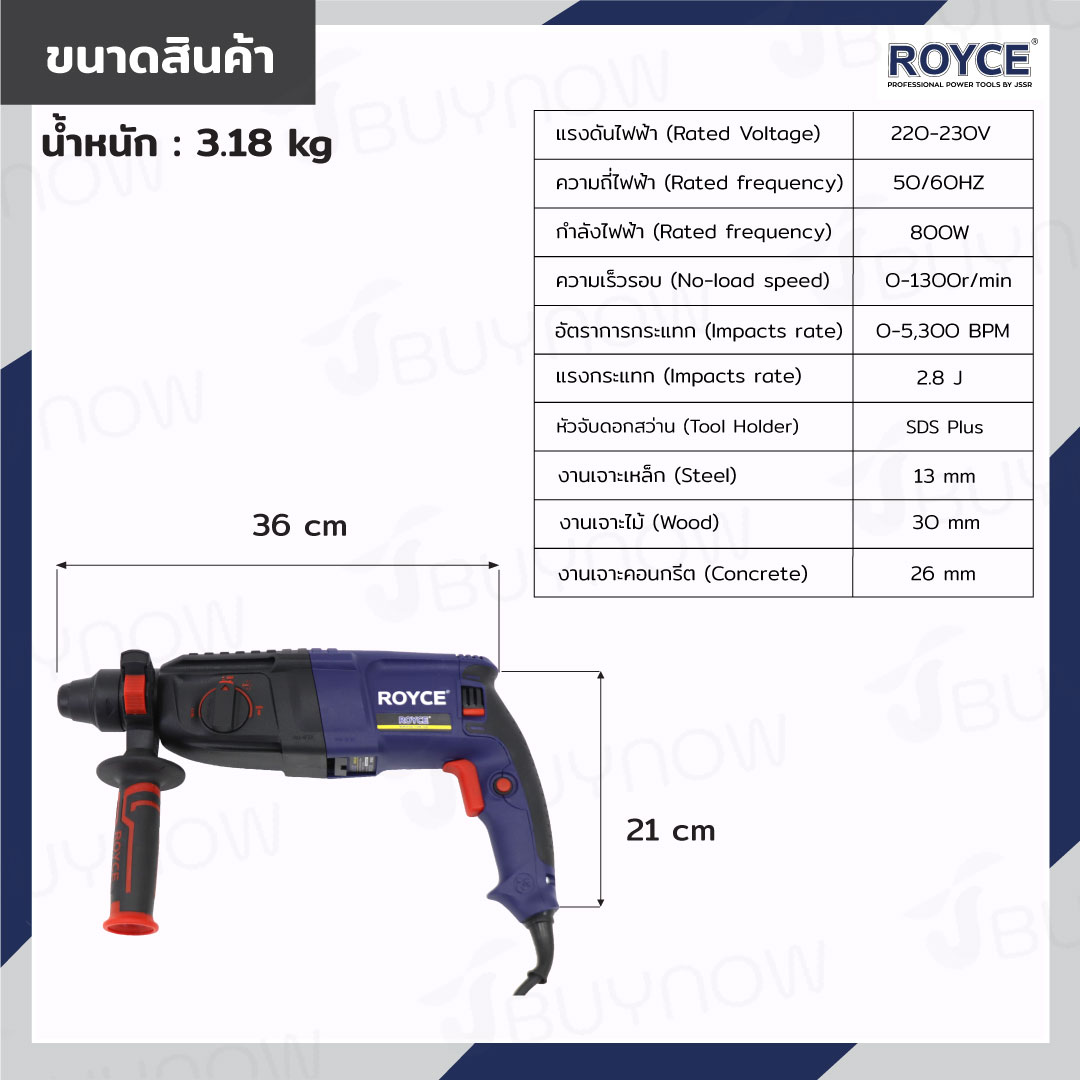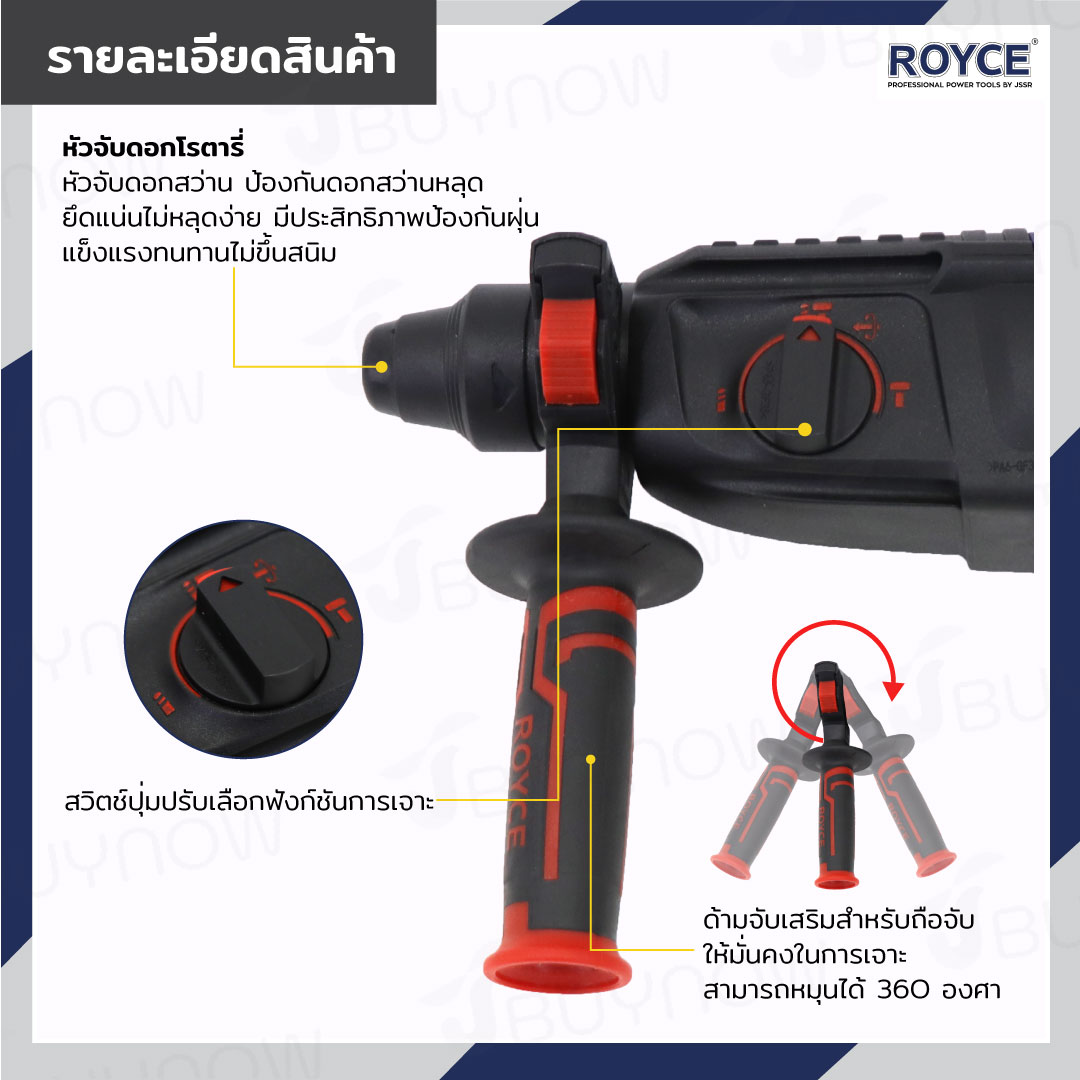 สว่านโรตารี่ 26 mm 800W ROYCE JBUYNOW RRH24-800