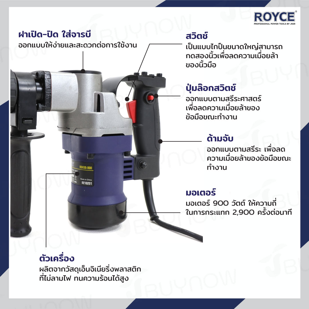 สว่านโรตารี่ งานหนัก 17mm 900W ROYCE JBUYNOW RDH30-900