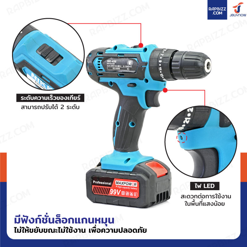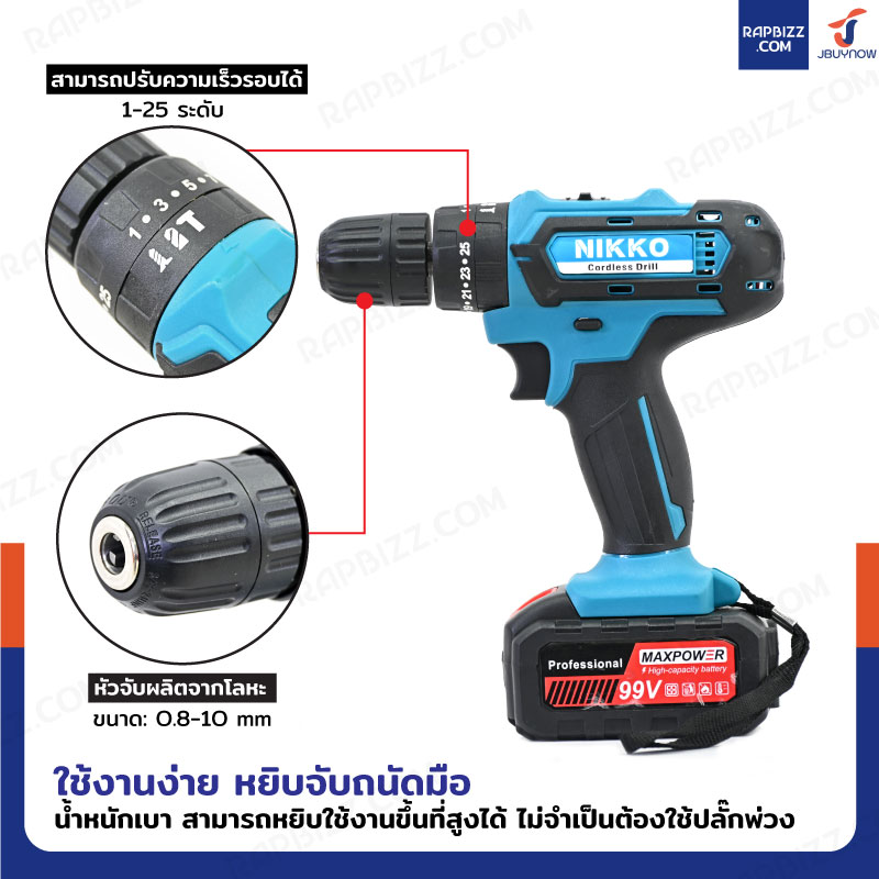 - สามารถเจาะไม้ เจาะเหล็ก ขันน็อต-สกรูได้