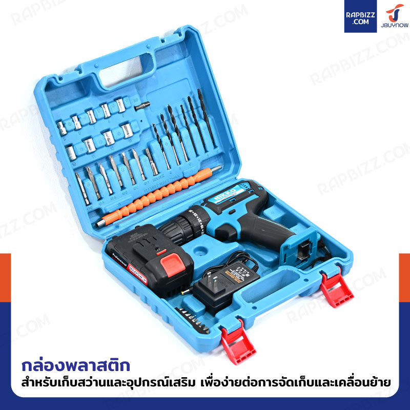 - มีกล่องพลาสติกสำหรับเก็บสว่านและอุปกรณ์เสริม เพื่อง่ายต่อการจัดเก็บและเคลื่อนย้าย