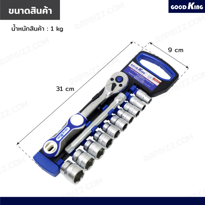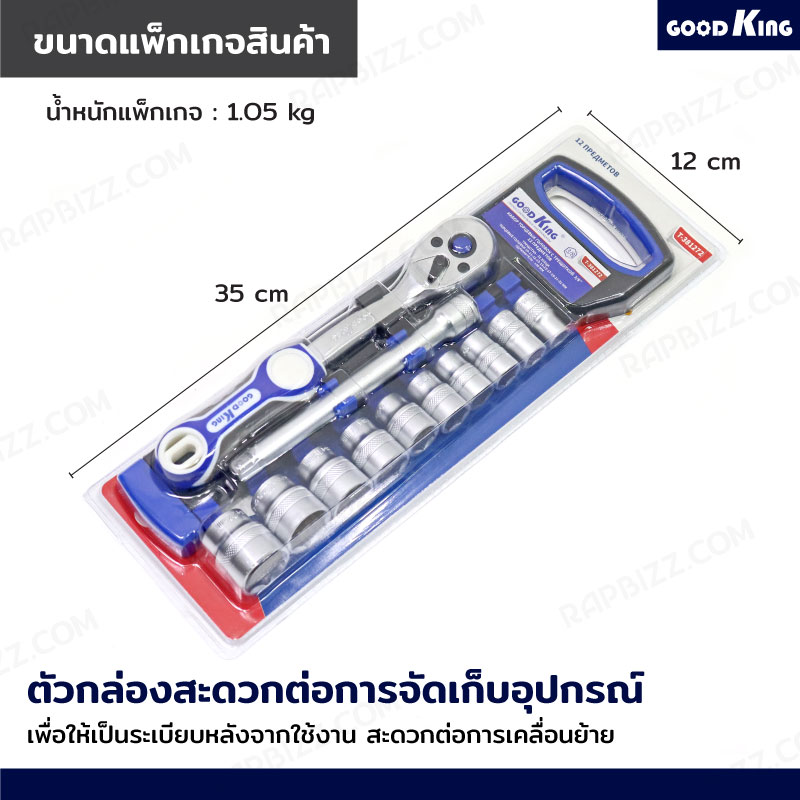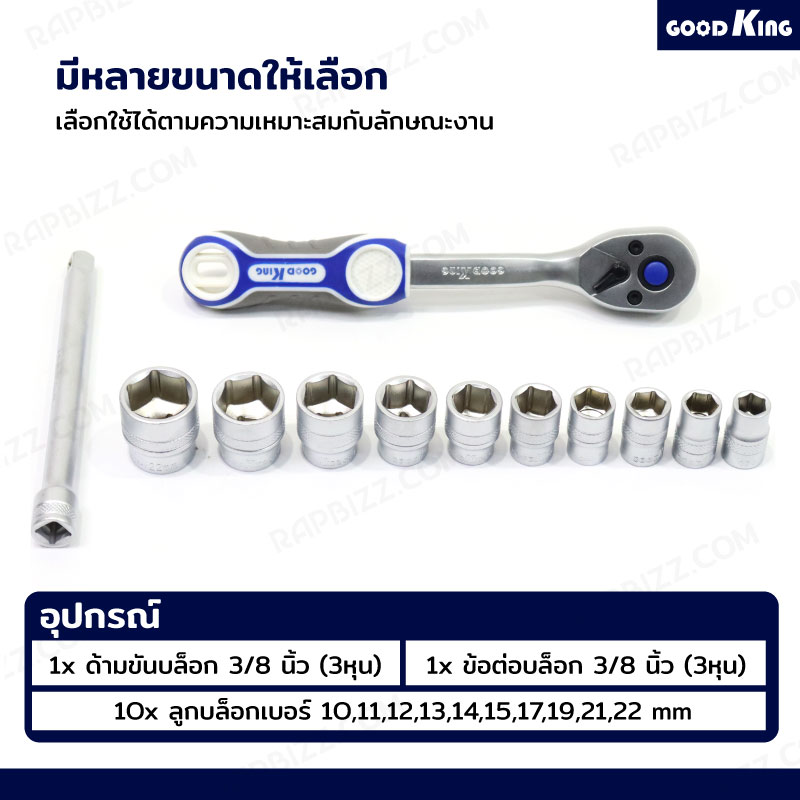 ชุดประแจบล็อก 12 ชิ้น 3/8 (3หุน) 10-22 (CR-V) GOODKING JBUYNOW T-381272