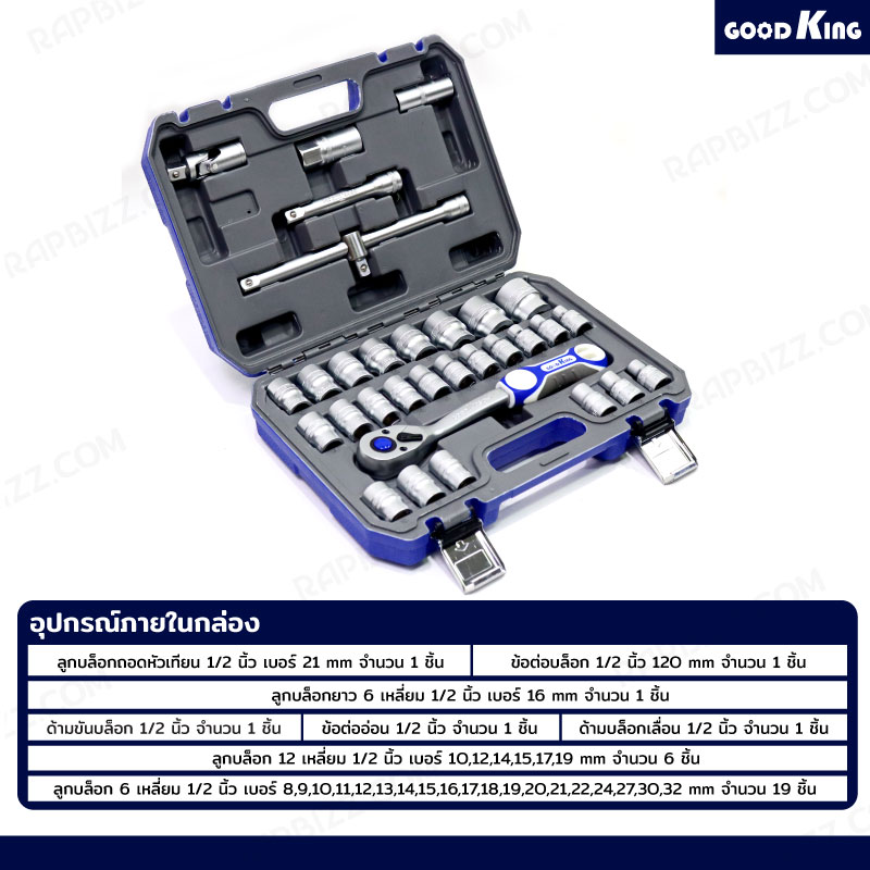 ชุดประแจบล็อก 32 ชิ้น 1/2 นิ้ว (4หุน) (CR-V) GOODKING JBUYNOW B-10032