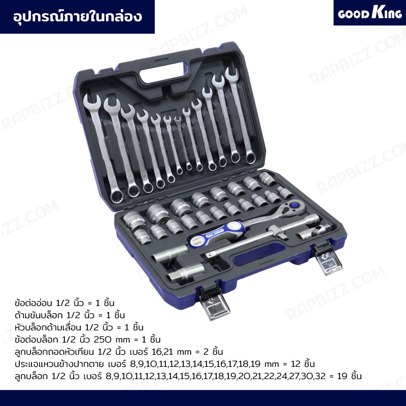 ชุดประแจบล็อก 37 ชิ้น 1/2 (4หุน) (CR-V) GOODKING JBUYNOW B-10037