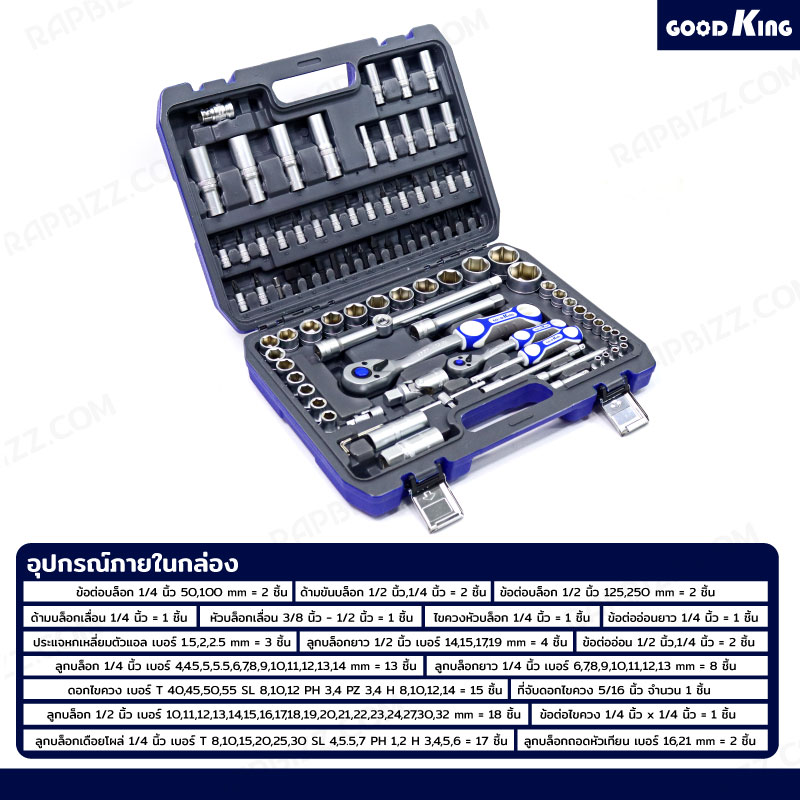 ชุดประแจบล็อก 94 ชิ้น 1/2 ,1/4 (CR-V) GOODKING JBUYNOW B-10094
