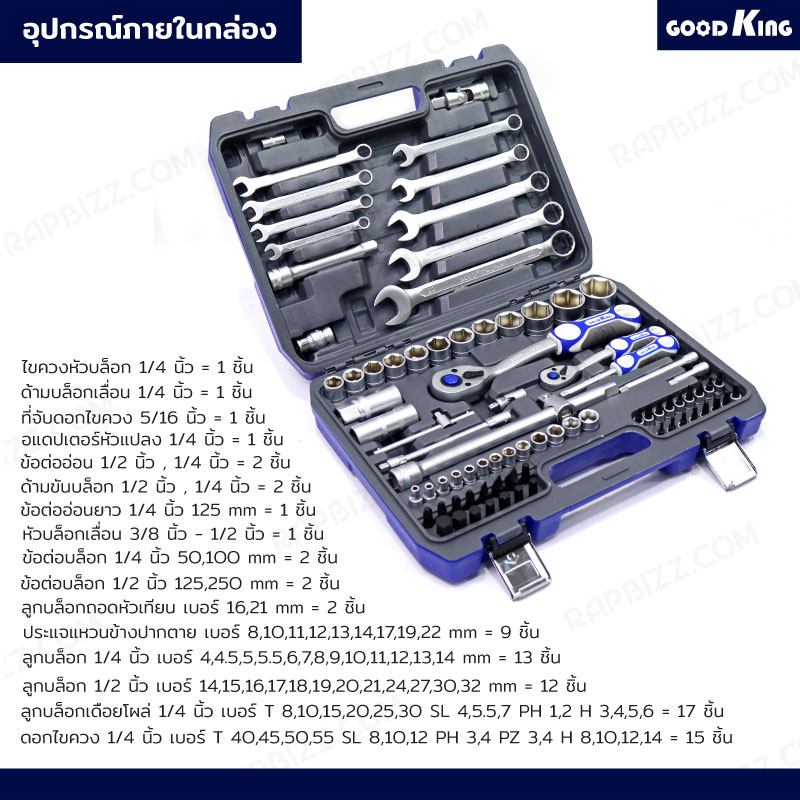 ชุดประแจบล็อก 82 ชิ้น 1/2 ,1/4 (CR-V) GOODKING JBUYNOW B-10082
