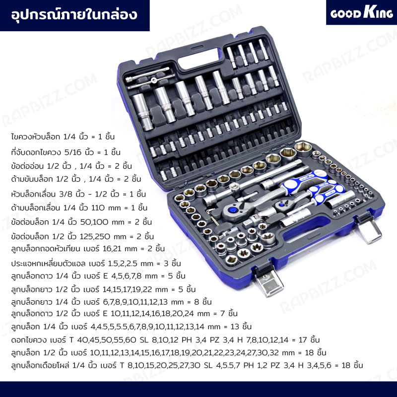 ชุดประแจบล็อก 108 ชิ้น 1/2 ,1/4 (CR-V) GOODKING JBUYNOW B-10108