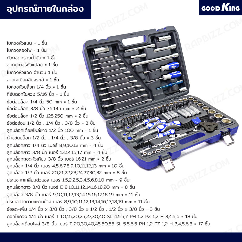 ชุดประแจบล็อก 121 ชิ้น 1/2 ,3/8 ,1/4 (CR-V) GOODKING JBUYNOW B-10121