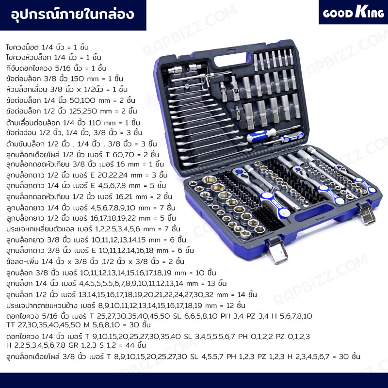ชุดประแจบล็อก 216 ชิ้น 1/2 ,3/8 ,1/4 (CR-V) GOODKING JBUYNOW B-10216