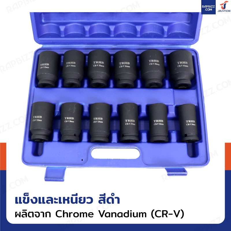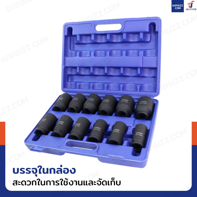 ชุดลูกบล็อก 12 ชิ้น 3/4 นิ้ว (6 หุน) 24-41 MM งานหนัก เหล็ก ดำ