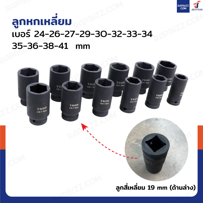 - ลูกบล็อก 12 ชิ้น ขนาด 3/4 เบอร์ 24-26-27-29-30-32-33-34-35-36-38-41 mm