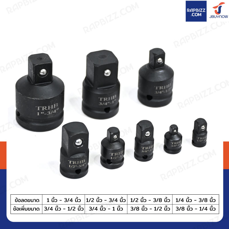 - ข้อเพิ่มขนาด: 3/4”-1/2”, 3/4 -1”, 3/8”-1/2”, 3/8”-1/4”