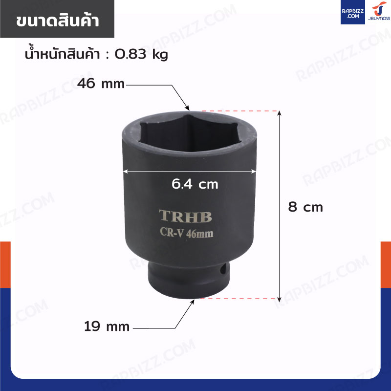 - ลูกบล็อก 3/4 (6หุน) เบอร์ 46 mm สูง 8 cm