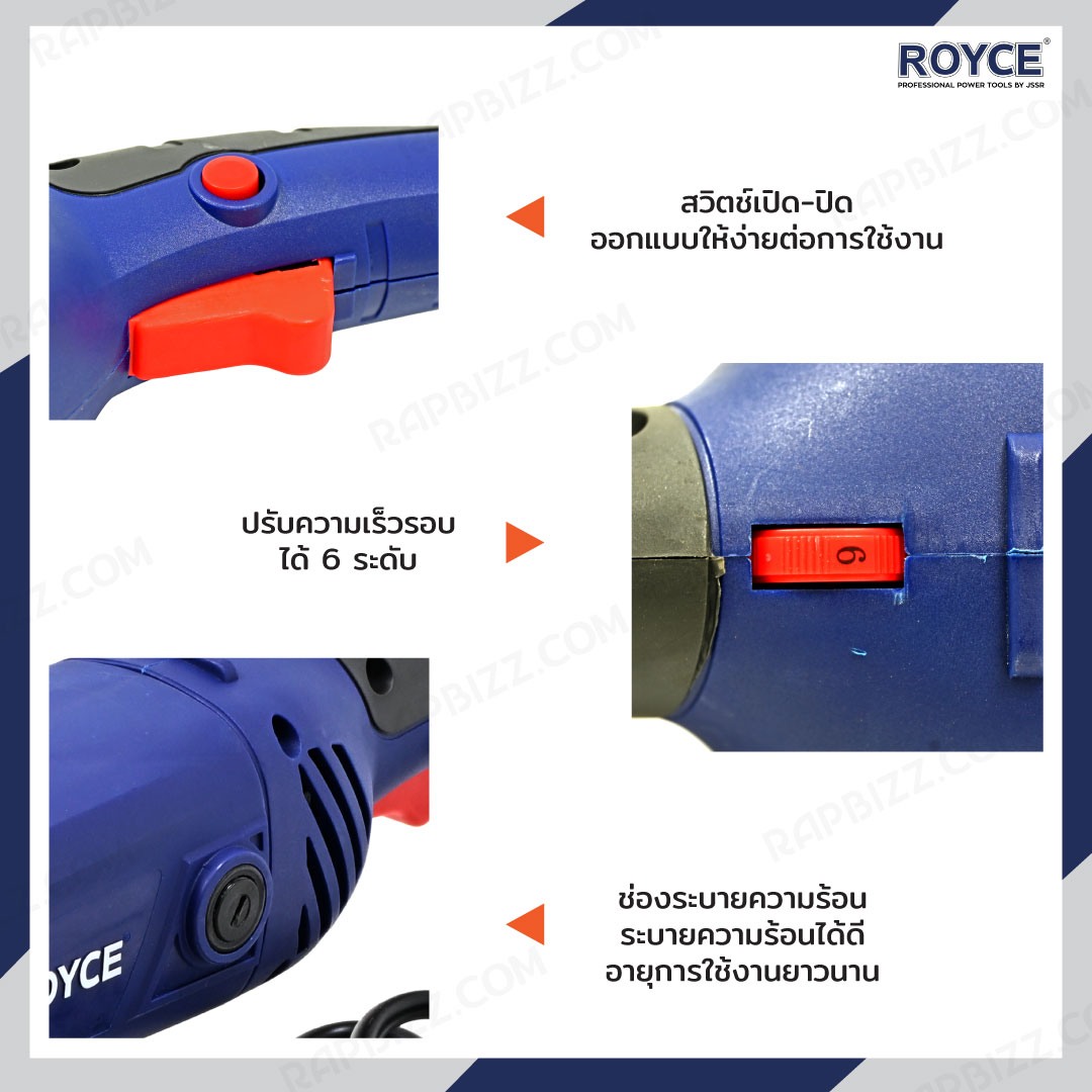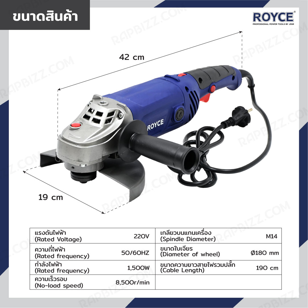 ROYCE เครื่องเจียร์ไฟฟ้า 7 นิ้ว (180 mm) หินเจียร กำลังไฟฟ้า 1500W RAG180-1500S