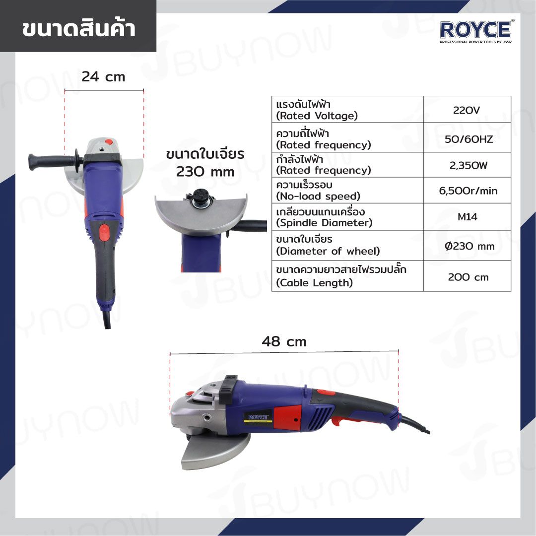 เครื่องเจียร์ไฟฟ้า 9 นิ้ว (230 mm) หินเจียร กำลังไฟฟ้า 2350W ROYCE JBUYNOW RAG230A-2350