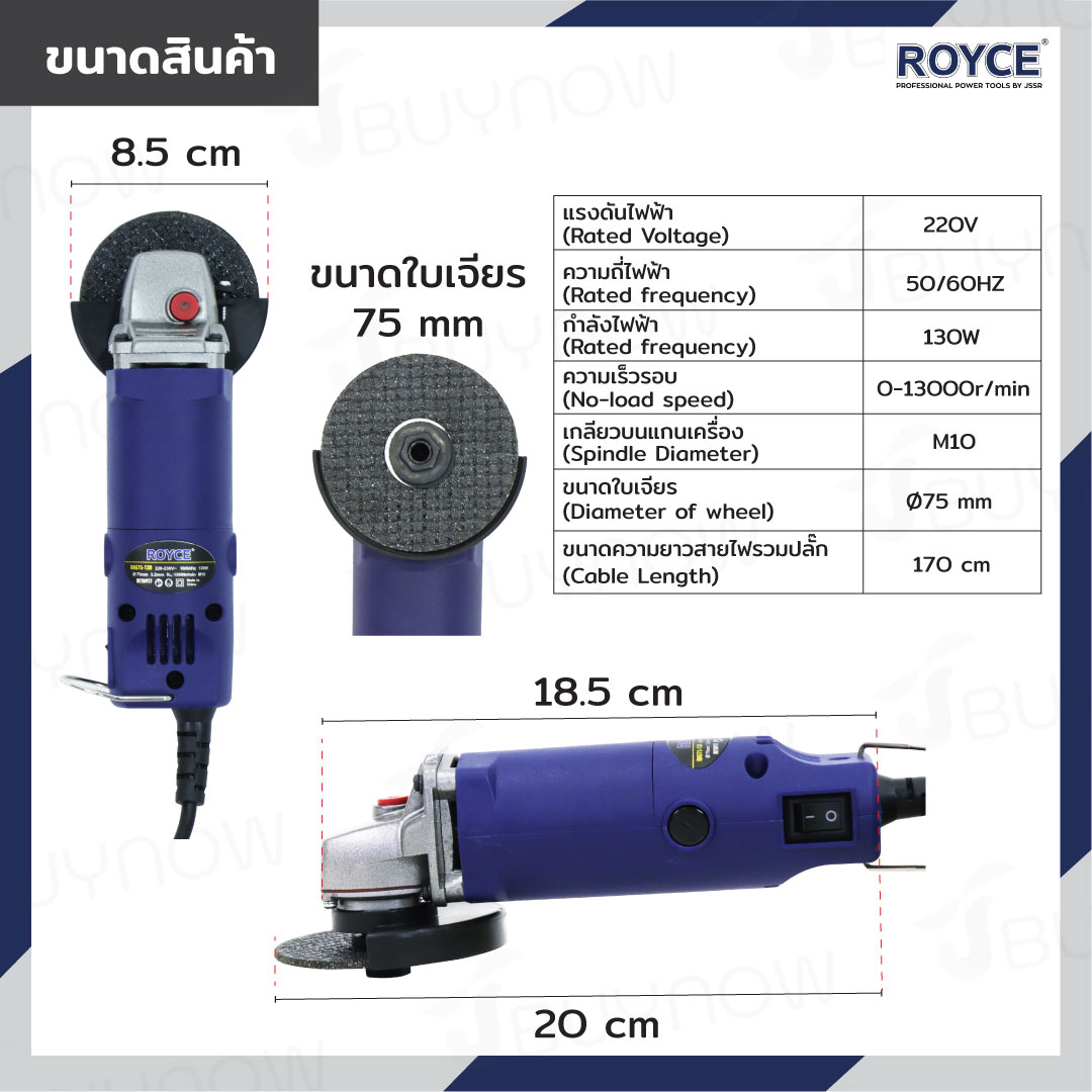 เครื่องเจียร์ไฟฟ้า 3 นิ้ว (75 mm) 130W ROYCE JBUYNOW RAG75-130