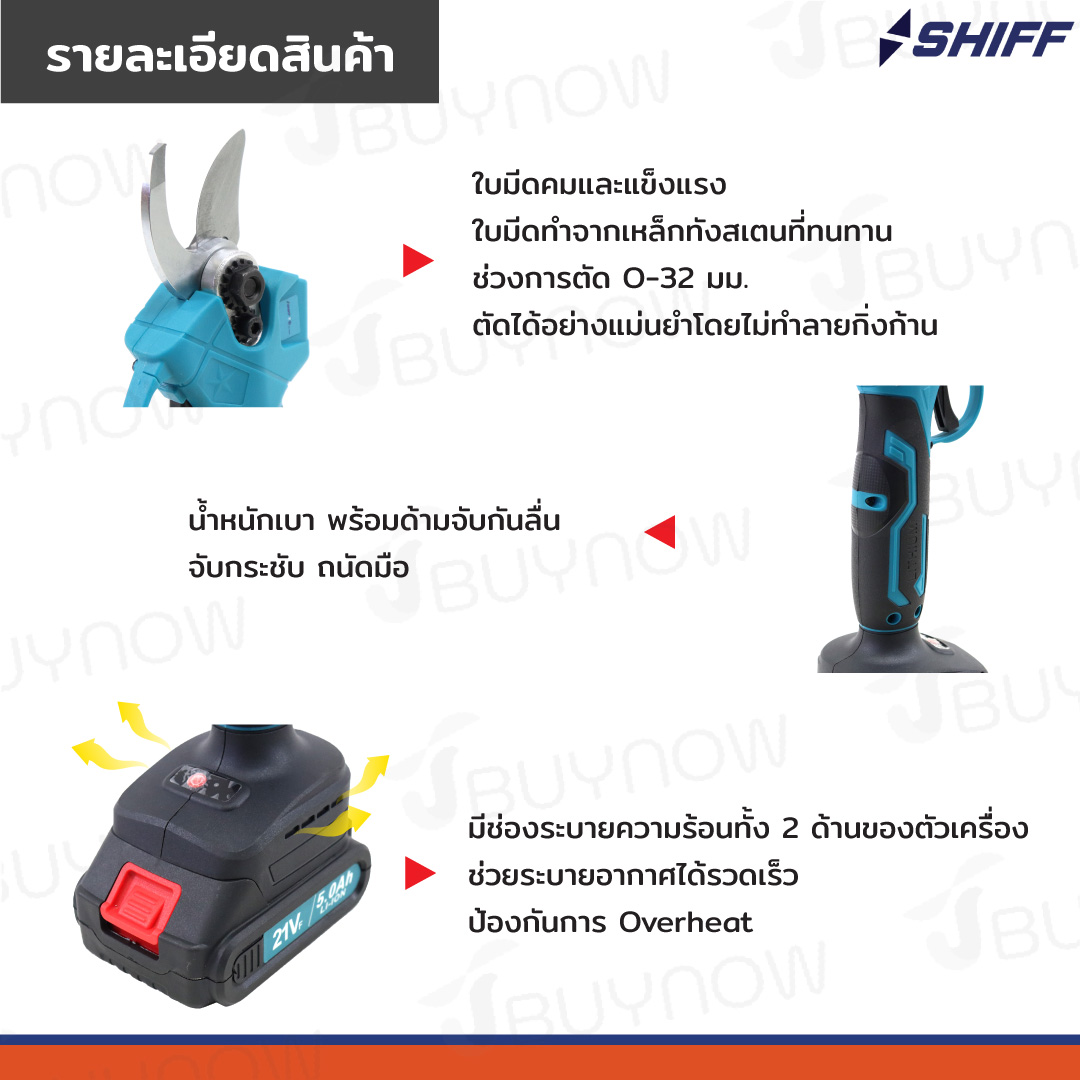 กรรไกรตัดแต่งกิ่งไฟฟ้า ไร้สาย 21V(32mm) SHIFF JBUYNOW TF-PS01