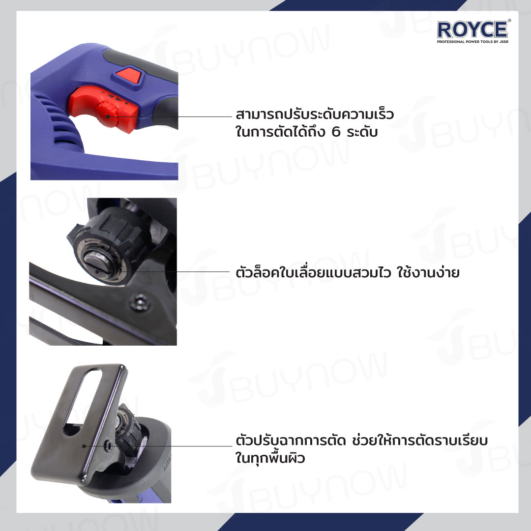 - ตัวล็อกใบเลื่อยสามารถปรับระดับความเร็วในการตัดไดถึง 6 ระดับ