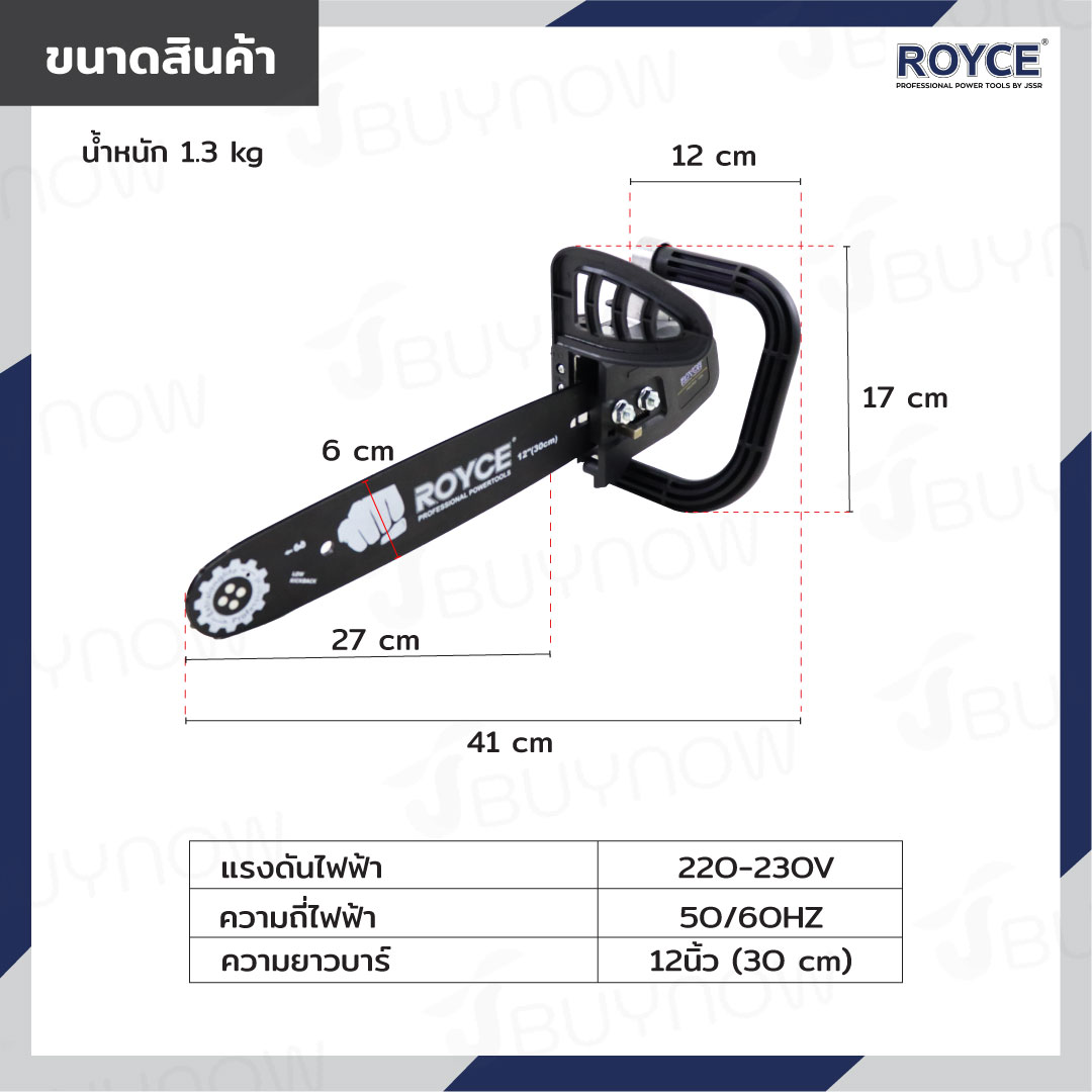 หัวบาร์เลื่อยโซ่ 12 นิ้ว บาร์โซ่ใส่เครื่องเจียร์ JBUYNOW ROYCE RECSS-12S