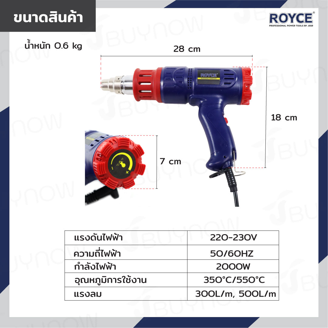 ปืนเป่าลมร้อน 2000W ROYCE JBUYNOW RHG-2000
