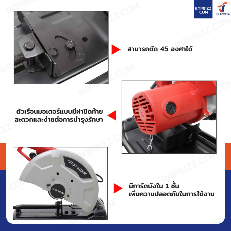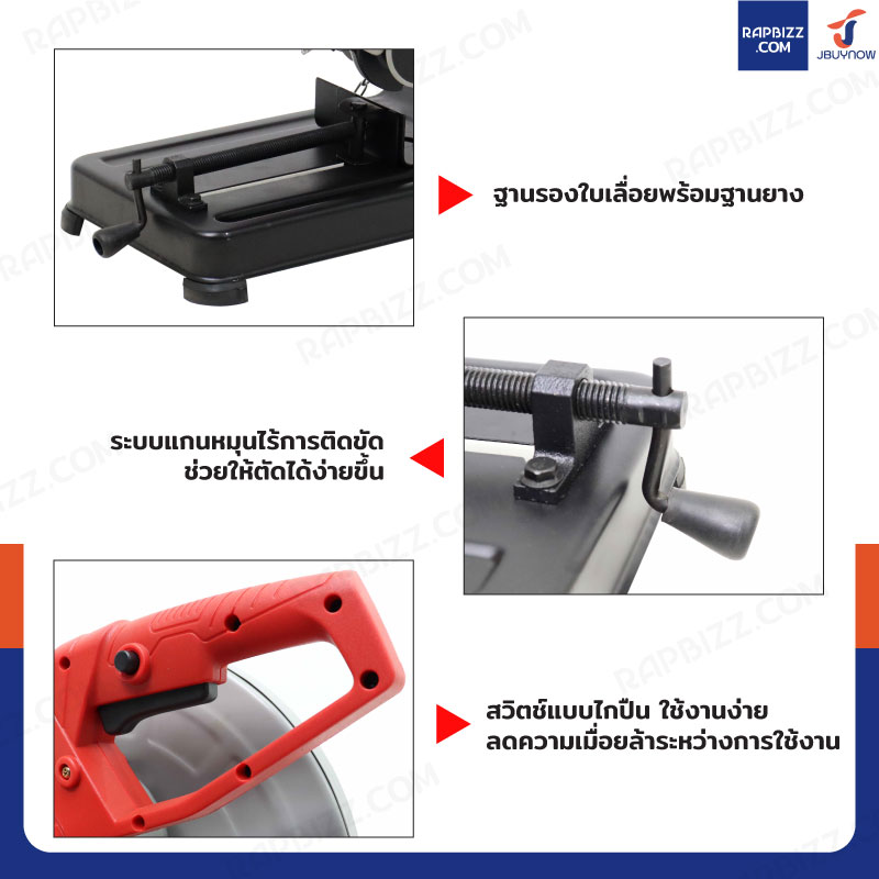 - แขนเลื่อยและบานพับ มีความแข็งแรง สำหรับงานหนัก สามารถตัดได้ตรง