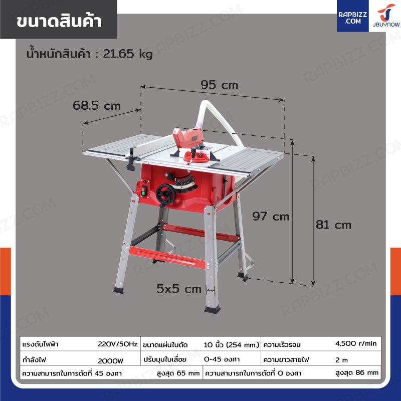 โต๊ะเลื่อยวงเดือน โต๊ะเลื่อย 10 นิ้ว 2000 วัตต์ สามารถปรับองศาได้