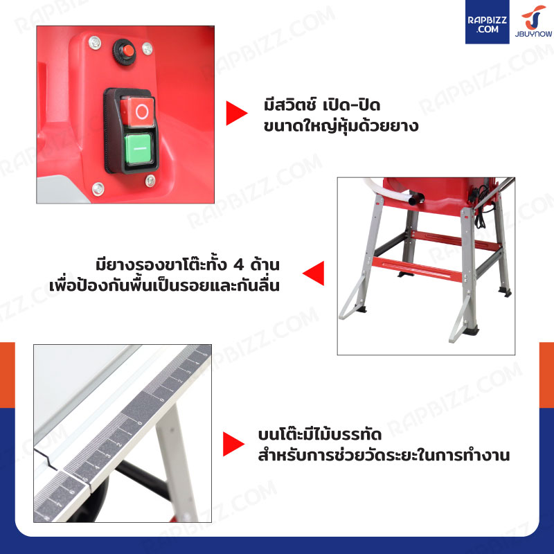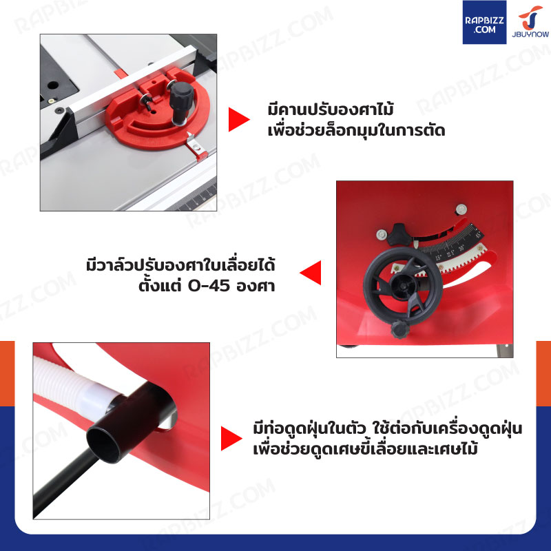 - สามารถปรับมุมใบเลื่อยได้ตั้งแต่ 0-45 องศา