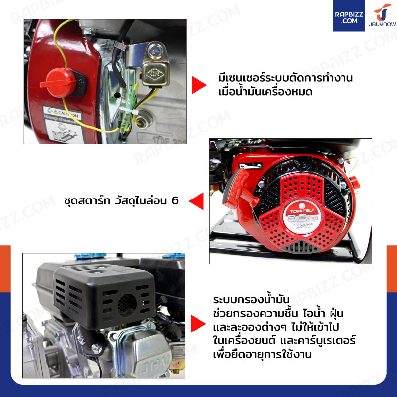 - มีเซนเซอร์ระบบตัดการทำงานเมื่อน้ำมันเครื่องหมด