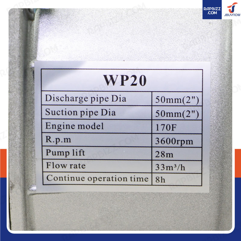 - ขนาดท่อน้ำเข้า-ออก: 2 นิ้ว (50 mm)