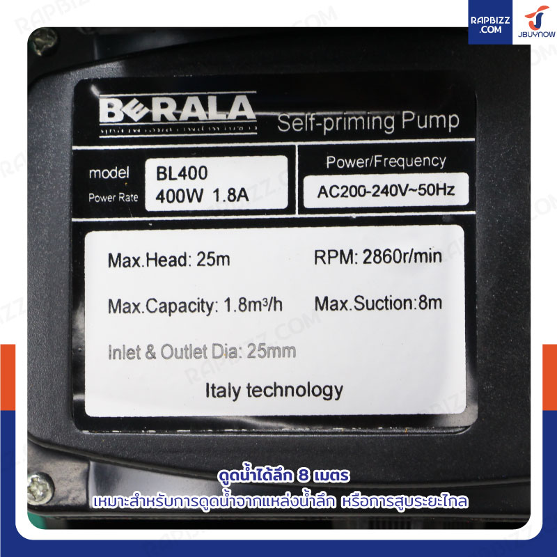 BERALA ปั๊มน้ำอัตโนมัติ รุ่น BL-400