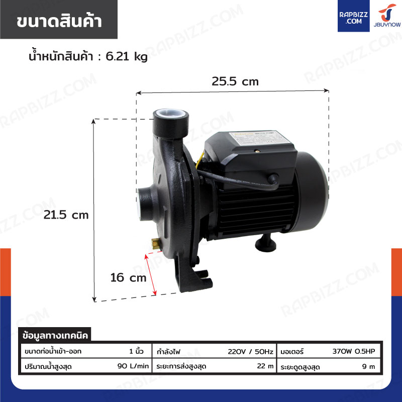 - ใช้ดูดน้ำลึกได้ถึง 9 เมตร เหมาะสำหรับการดูดน้ำจากแหล่งน้ำลึก หรือการสูบระยะไกล