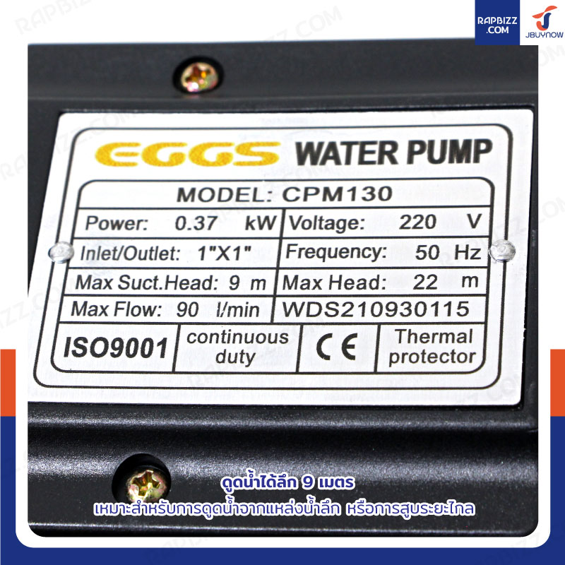 EGGS ปั๊มน้ำหอยโข่ง ปั๊มน้ำ 370W 0.5 แรงม้า ขนาด 1 นิ้ว รุ่น CPM-130