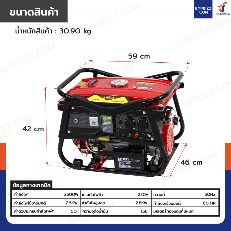 BERALA เครื่องปั่นไฟ 2500W 6.5แรงม้า TP3900